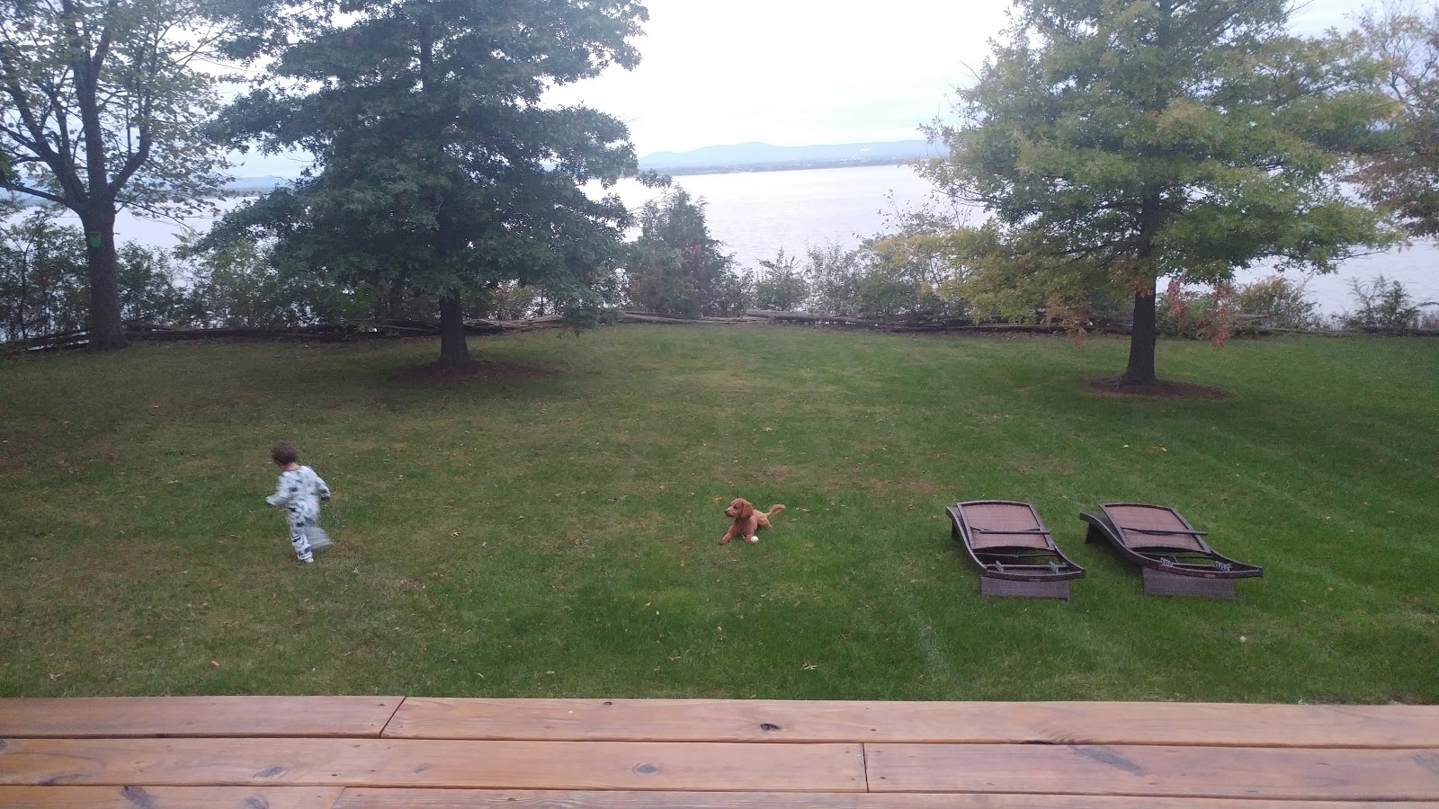 We started the trip out with a hike (longer than expected due to negligence and an unnecessary work call taken by our navigator, Nathan- I'm not at all still bitter it prevented us from making our train ride through the mountains). But there were from beautiful views, and next, we stopped at flume gorge to see a beautiful waterfall. Then we finished our drive at our destination, Burlington. First, we went to Barnyard, a restaurant we went to on our first trip to Burlington (twice). Didn't quite live up to our memories of it after a 45-minute wait. Then we made it to our lake house, right next to Lake Champlain and about a 25-minute drive from the city. Zeus loved the house most of all because of all the yard space.